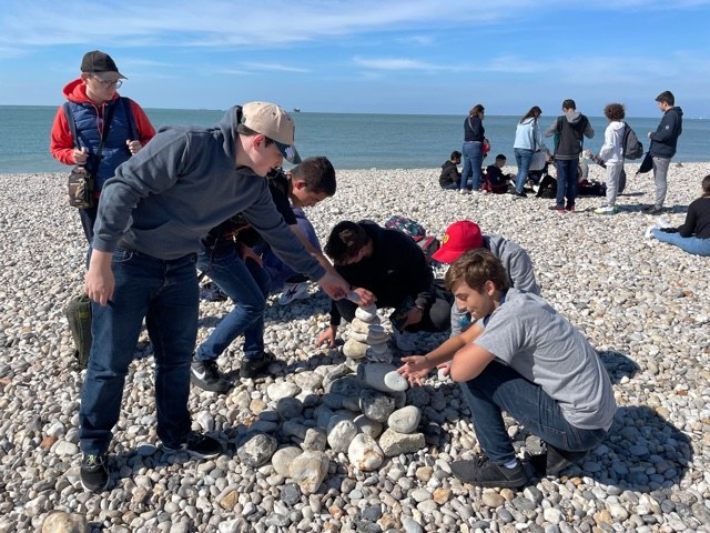 Puis la classe a pique-niqué sur la plage de galets au Havre. Nous avons apprécié ce moment où nous avons rigolé en construisant des cairns avec des galets.