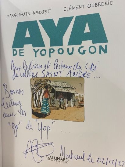 Certains avaient décidé de repérer la liste de leurs auteurs préférés qui seraient présents au salon afin de faire dédicacer leur livre. Et quelle chance ! Sur les 280 auteurs présents sur les 5 jours du salon, Marguerite Abouet, l’autrice d’Aya de Yopougon, serait présente pour la sortie du dernier tome ! Tom, en particulier, était ravi.
