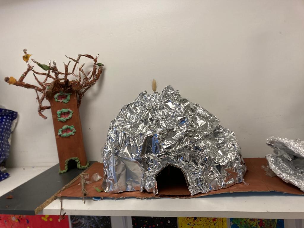 Les troisièmes ont élaboré des projets architecturaux en pensant à l’avenir. « Bio architecture » « architecture organique » en osmose avec l’environnement. Ils ont revisité l’habitat humain hybridation de l’habitat « naturel » : salle de concert-grotte, hôpital-igloo, cabane-animal, immeuble-arbre…