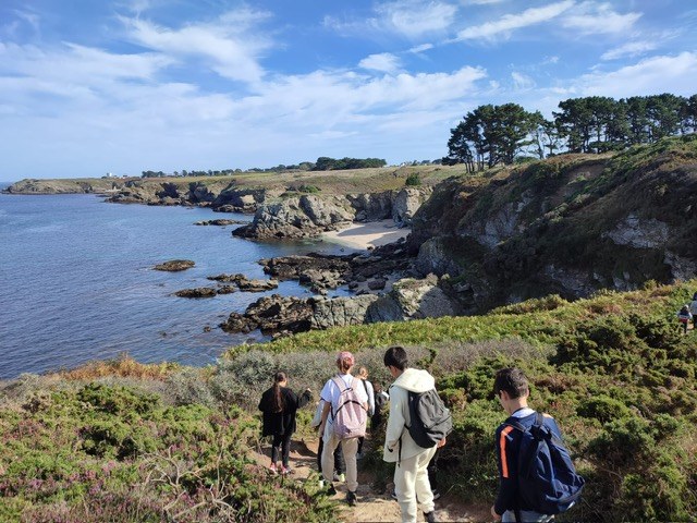 C’est en embarquant pour Belle-ïle, que les trois classes de sixièmes se sont inventés écrivains sous la houlette de Mano et Guy et ont pu noircir du papier mais cette fois-ci avec plaisir et envie.