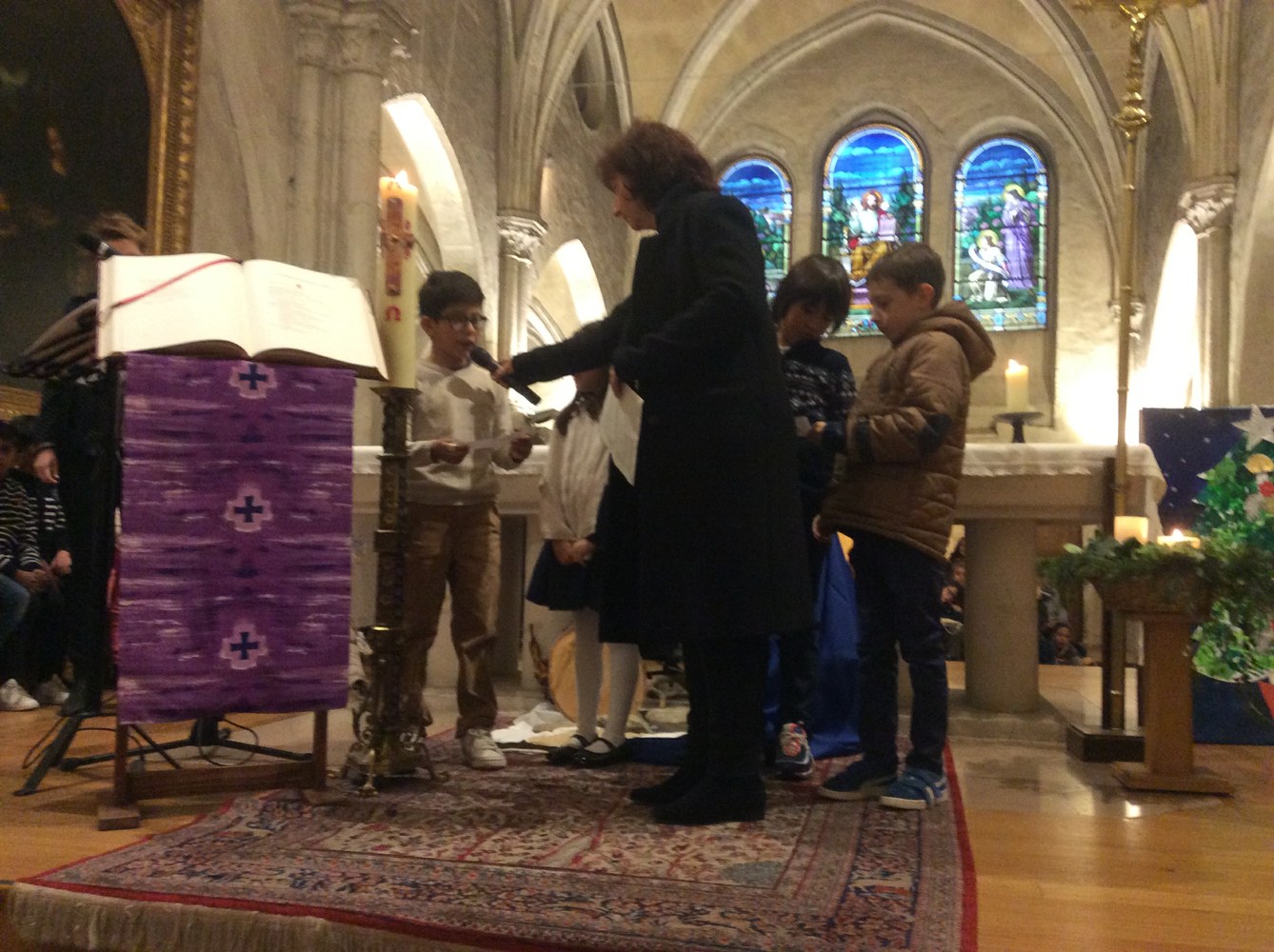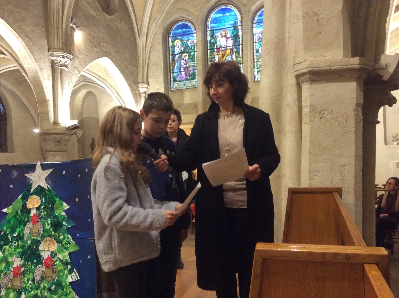 Ils ont été accueillis par un chant en anglais, puis Madame Iavarone a délivré un message sur la lumière et l'amour que Dieu offre à Noël.