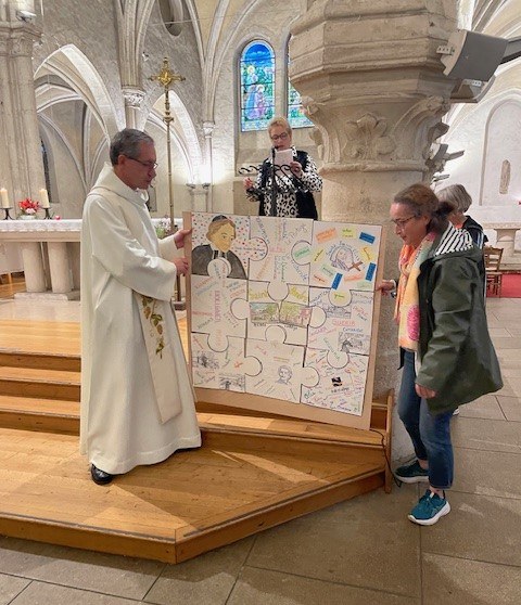 Chaque niveau d’élèves a remis une pièce de puzzle, illustrant les valeurs des Filles de La Croix, telles que l’amour, le respect, la solidarité ou la foi, ainsi que les lieux emblématiques de la congrégation tels que l’escalier du pauvre, la grange des Marsyllis et la grotte de la cancéreuse.