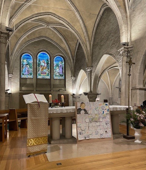 Les élèves ont déposé leurs pièces une à une devant l’autel, construisant ainsi un magnifique tableau qui a pris forme sous les yeux de tous les participants, un puissant rappel à perpétuer ce message d’amour et de service.
