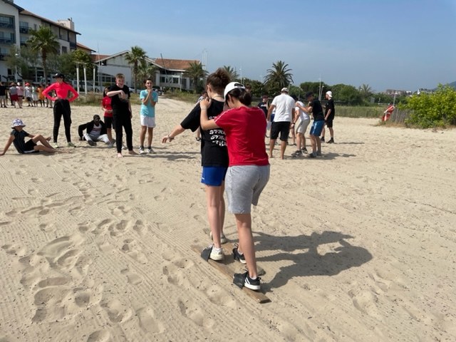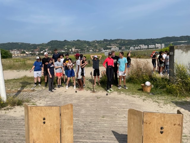 Hendaye et compétitions de force basque entre les élèves sur la plage.